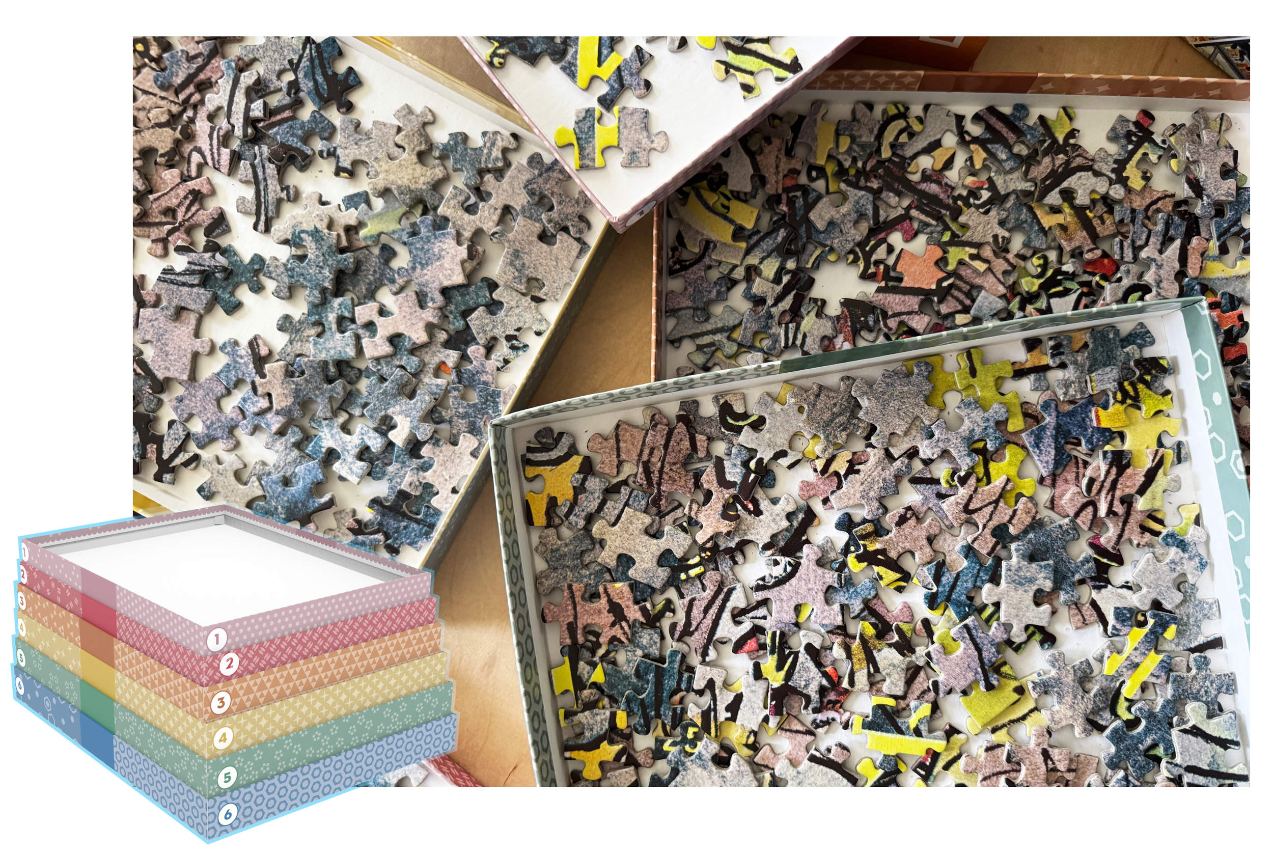 Make puzzle time easier and more organized with our nested sorting trays! Coming in a convenient set of 6, these trays help separate pieces by color, shape, or section—so you can focus on the fun of puzzling, not the mess.