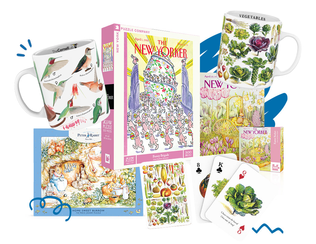 Explore mini jigsaw puzzles, puzzles in a variety of piece counts, charming illustrated mugs, and premium playing cards — all offering screen-free fun and lasting enjoyment. From fresh spring scenes and gardening-inspired artwork to nostalgic vintage media designs, these gifts add personality to any basket and complement classic Easter chocolate beautifully.